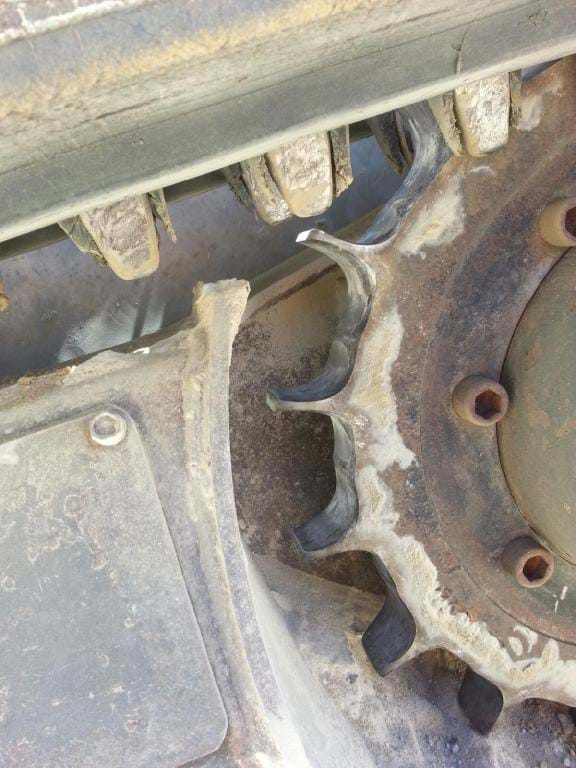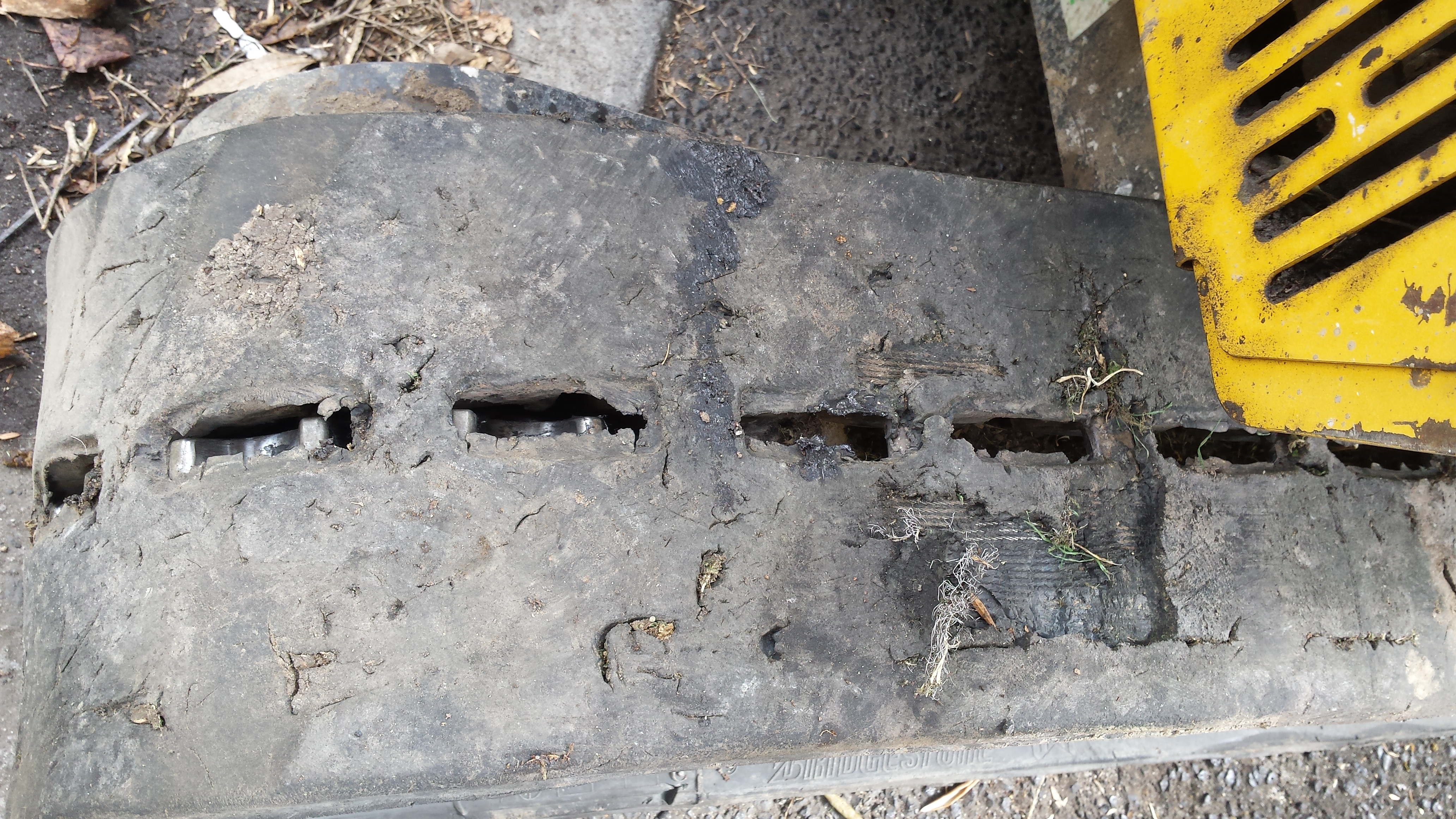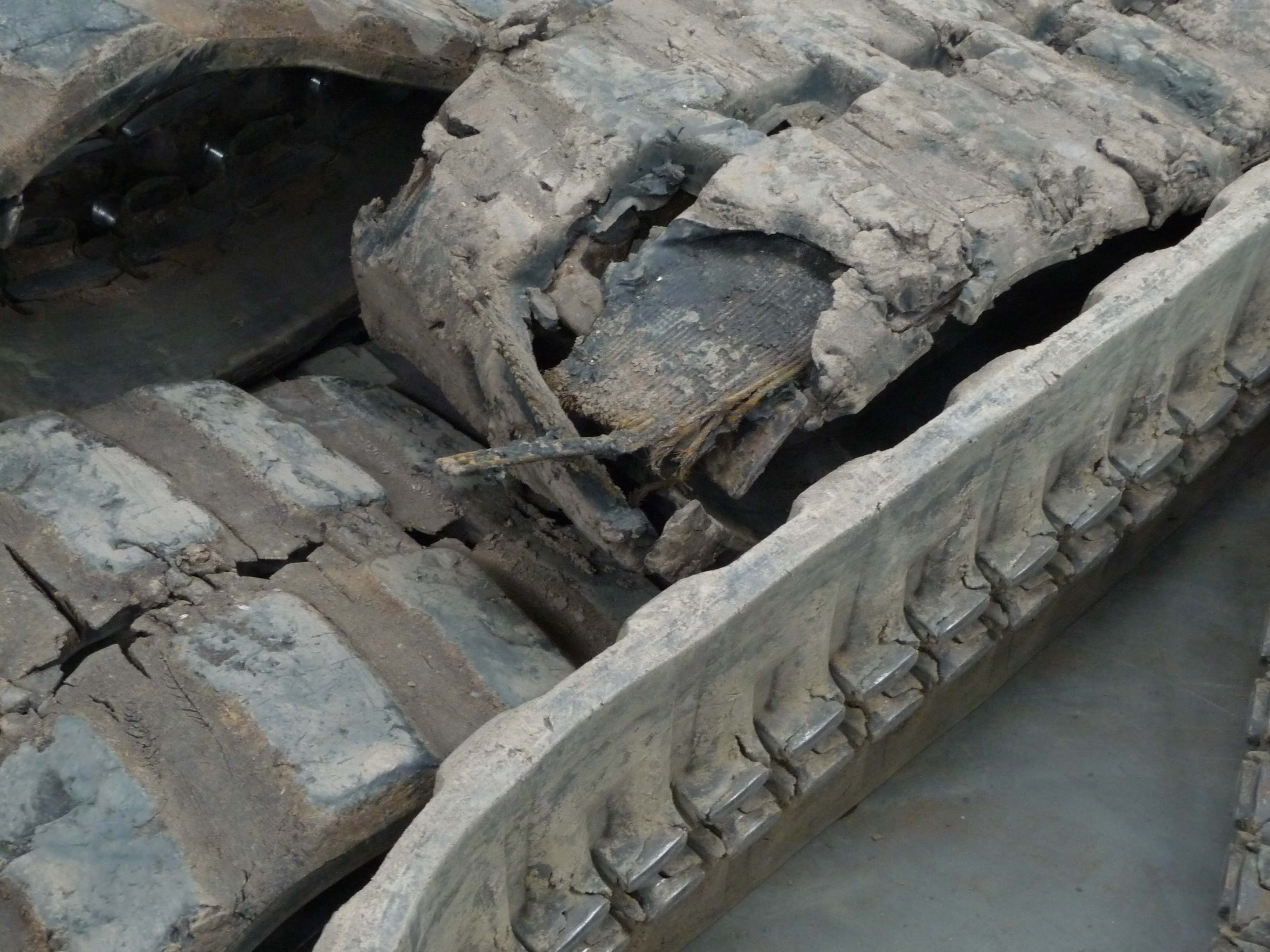 Below are some images of Rubber Track failures that we have seen recently in Melbourne. We will explain to you what we found when we inspected these tracks for our new clients and you will see why the production processes that our track manufacturer takes is so important, which separate our tracks from many of the other tracks supplied here in Australia.